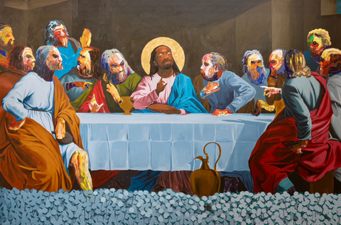 Featured artists include Barry Yusufu, Nedia Were, Boluwatife Oyediran, Matthew Eguavoen, Enoch Jr Chinweuba, Joseph Mobolaji Aina, Philip Letsu Komla, Qhamanande Maswana, Reggie Khumalo, David Komare , Maku Azu, Samuel Olayombo. These artists are shown in direct juxtaposition with portrayals of European and American subjects including American Gothic (Grant Wood, 1930, USA) and The Last Supper (Leonardo Davinci, 15th Century, Italy).